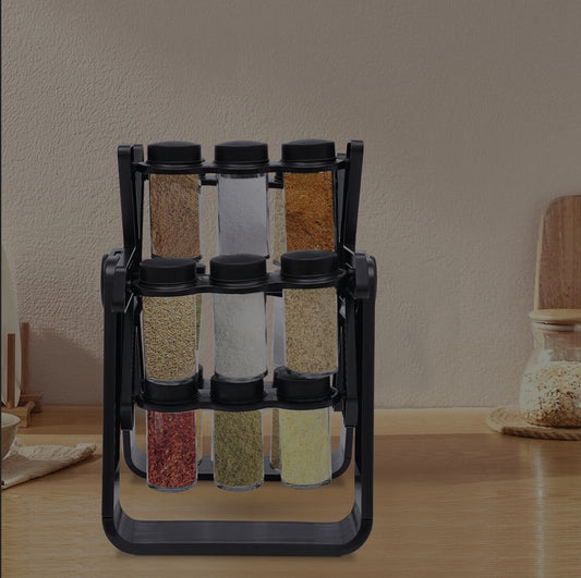 Organizator de condimente, 18 Borcane din sticla, Rotativ, Negru