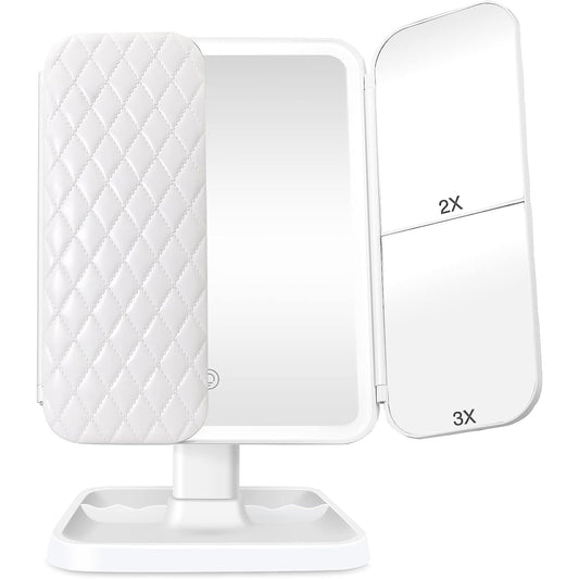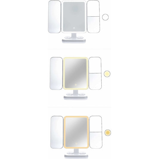 Oglindă Cosmetică cu LED pentru Make-Up, Zoom 2X 3X, Lumina Reglabilă, Buton Touch, USB, Alb
