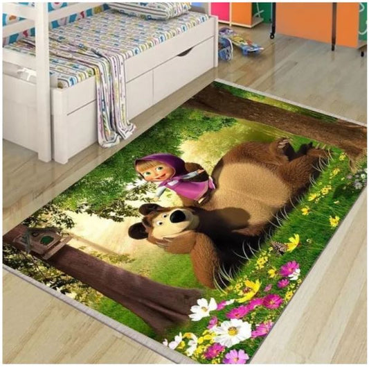 Covor 3D XL Antiderapant pentru copii, Masha and the Bear, Multicolor, 180x120 cm
