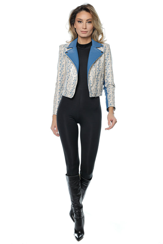 Geaca YA Flora by YOKO AIDA - Floral Print, Alb/Albastru, S INTL, Piele Naturală