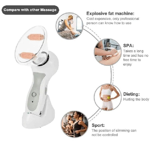 - Portabil și ușor de utilizat: Dimensiunile compacte îl fac simplu de transportat, astfel încât să poți beneficia de un masaj anticelulitic oriunde te afli.