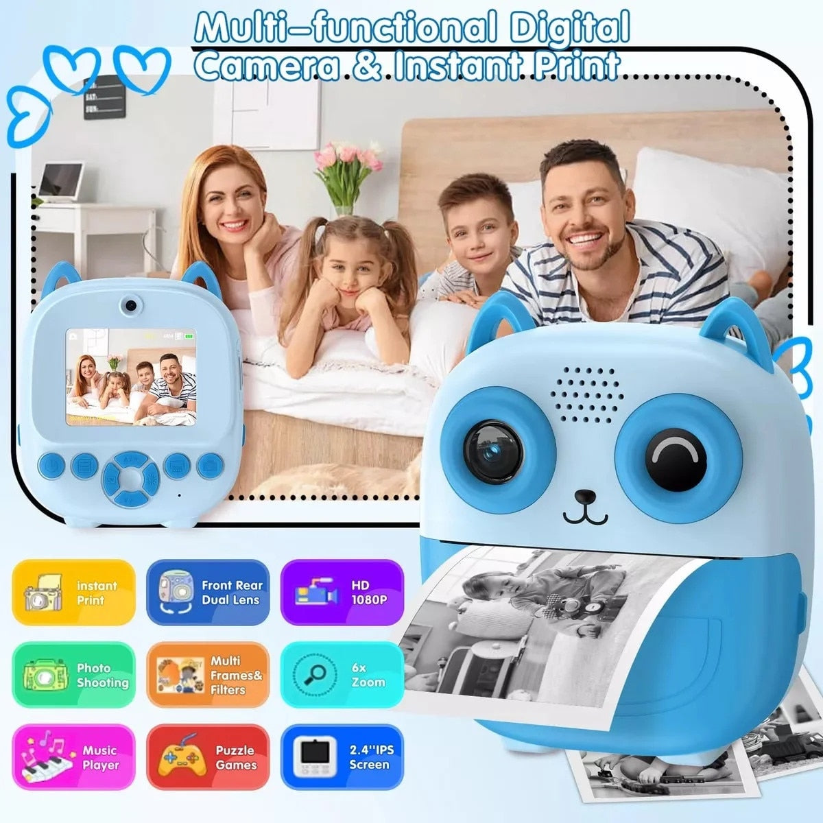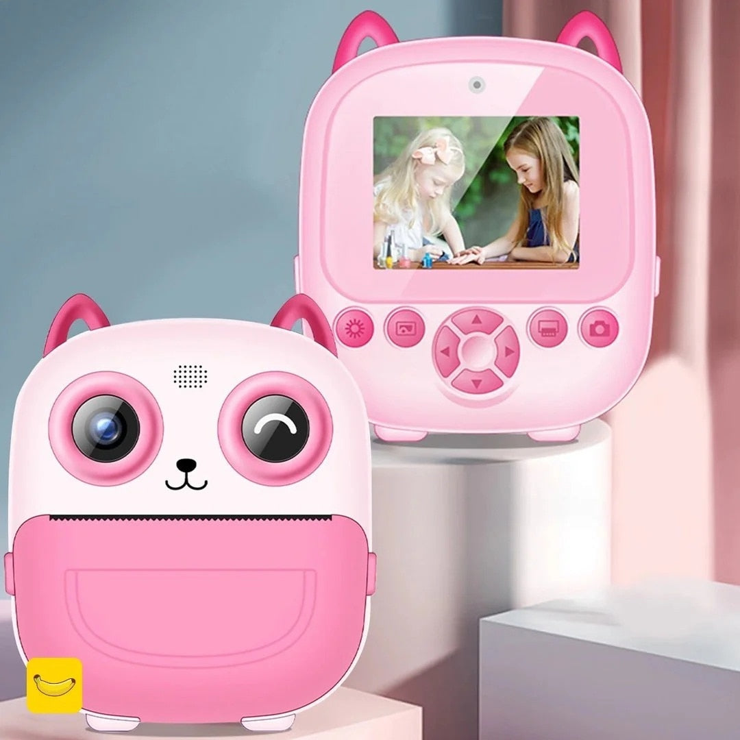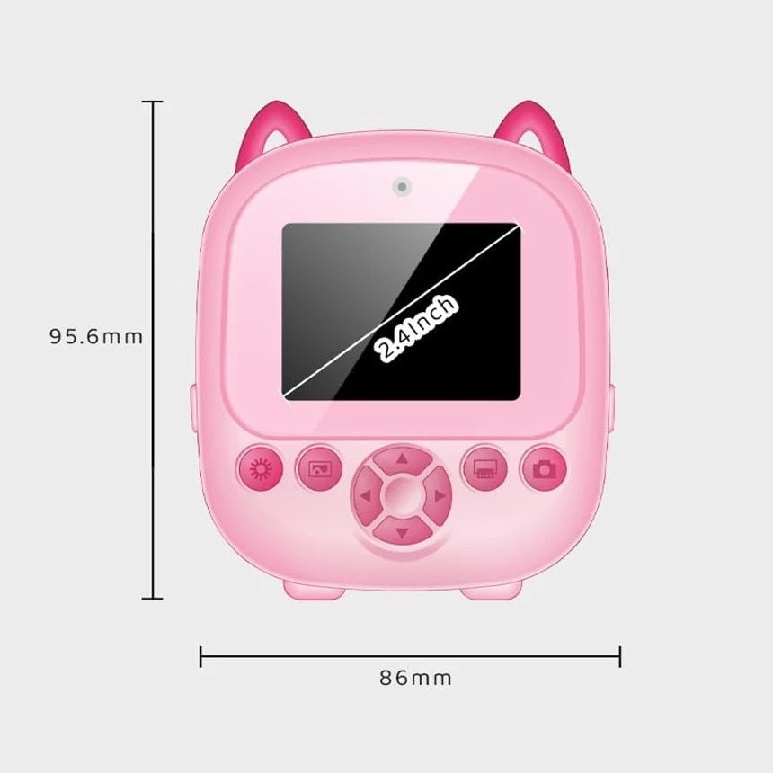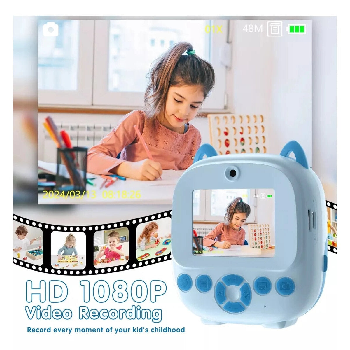 Aparat Foto cu Imprimare 2 in 1, 1080P cu Ecran 2.4 inch, Modalitate Selfie, Functie Printare Instant, Zoom 6x, Dual Lens, Cablu USB-C. Reincarcabil, Copii, Roz