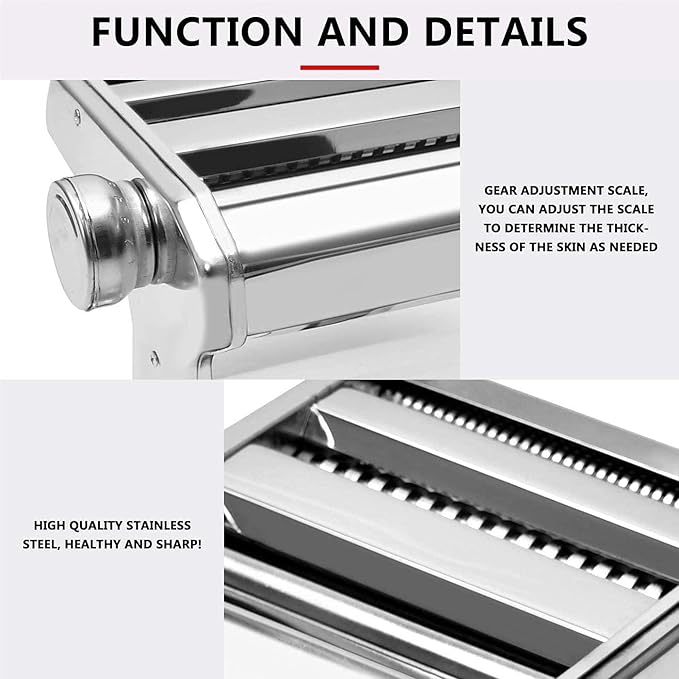 Pregătește paste proaspete și sănătoase chiar la tine acasă cu acest Aparat Manual de Făcut Paste din Inox! Ideal pentru orice bucătar amator sau profesionist, îți oferă control total asupra grosimii și tipului de tăiței.