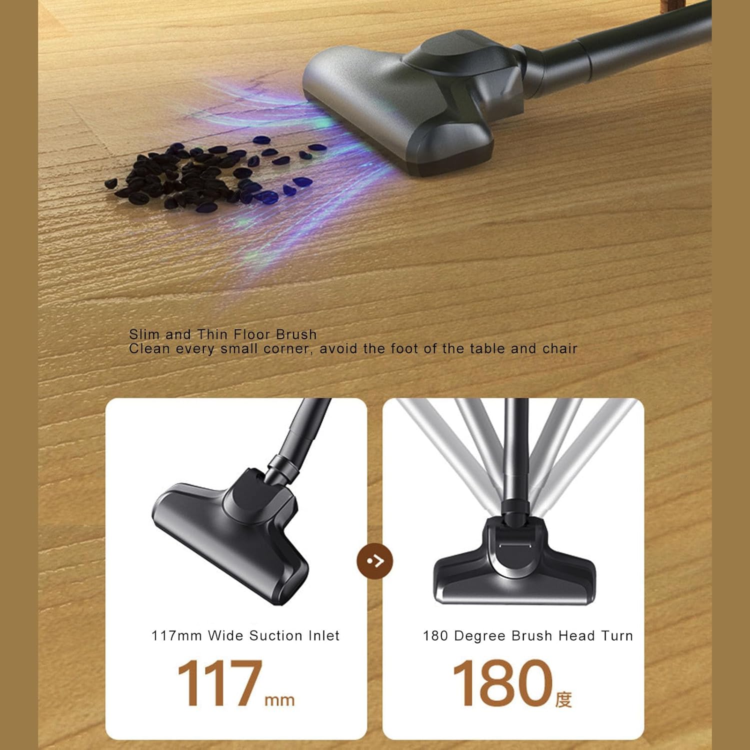 Echipat cu un motor puternic de 100W, aspiratorul HB-807 oferă până la 10.000Pa putere de aspirație, fiind extrem de eficient pentru: