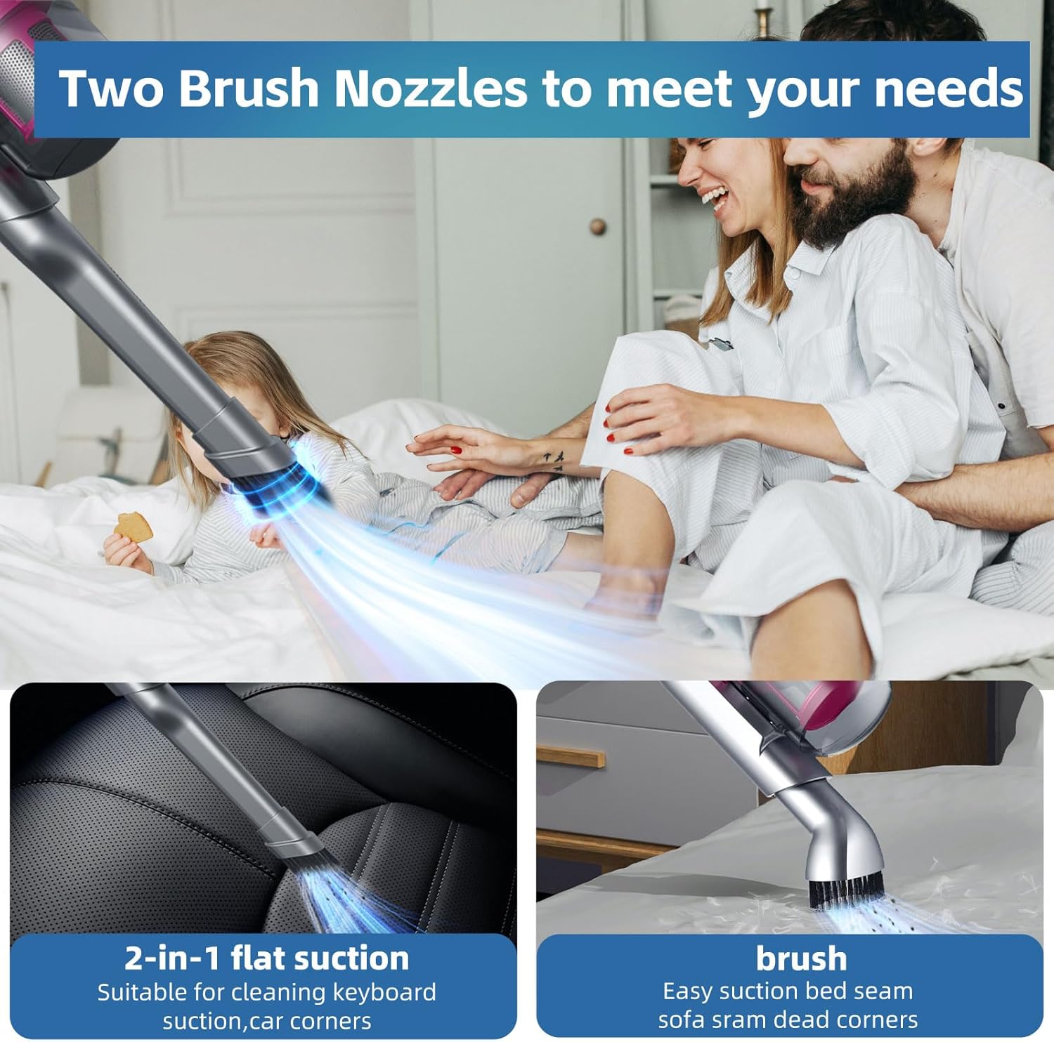 ✅ Aspirație puternică de 10.000Pa – îndepărtează acarienii și murdăria persistentă