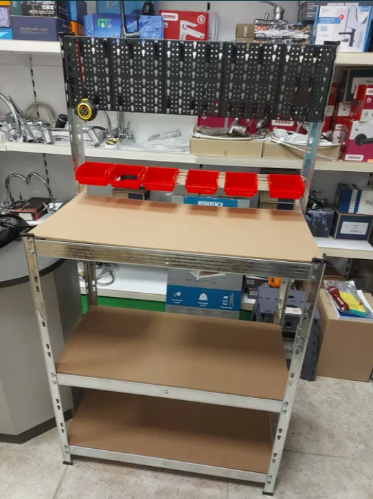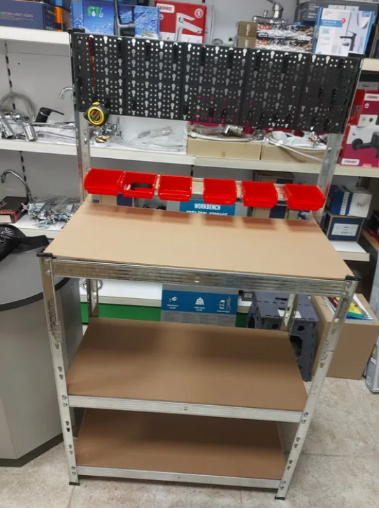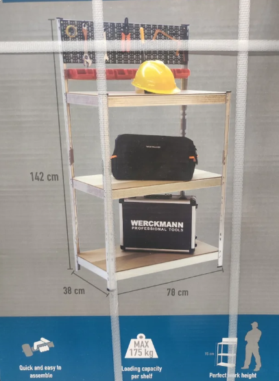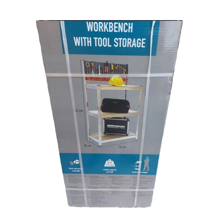 Cu dimensiuni de 142 cm înălțime, 78 cm lățime și 38 cm adâncime, banca de lucru dispune de rafturi spațioase, fiecare cu o capacitate de încărcare de 175 kg.