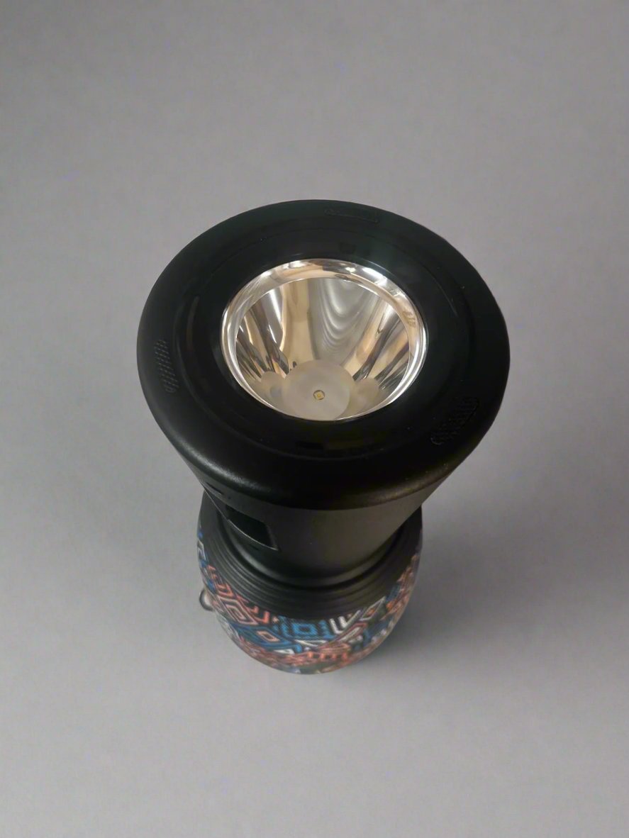 - Autonomie extinsă: Se încarcă prin USB sau panou solar, ideală pentru activități în aer liber.