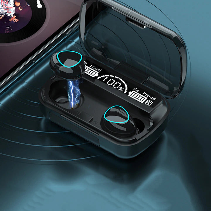 Casti Wireless M10 Bluetooth 5.3, Microfon, Statie incarcare cu afisaj, 2000 mAh