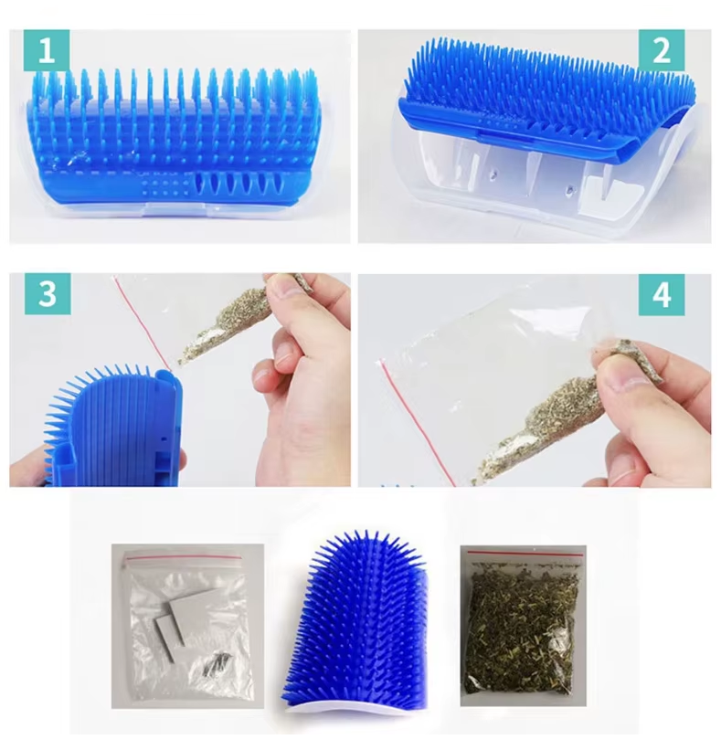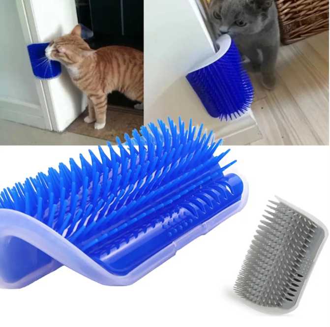 Catnip & Cat Scratcher Combo, Perie Masaj Pisici, Corner Self-Grooming Brush