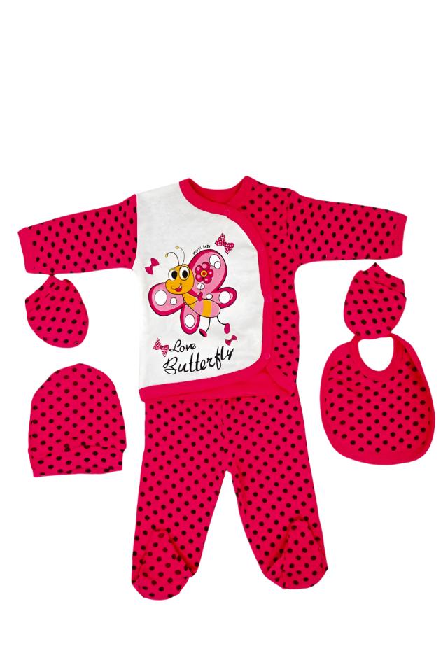 Compleu 5 piese pentru bebe Spiko, Fluturasul Iubirii, Roz, 0-3 luni