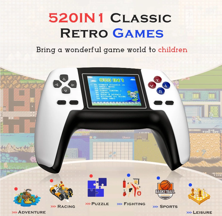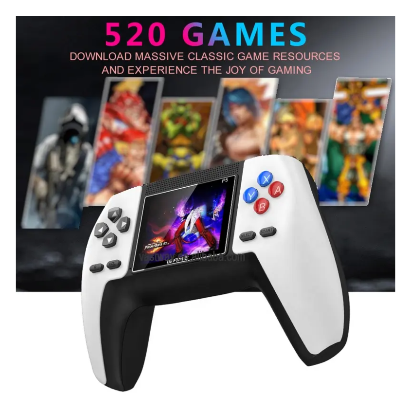 Consola de jocuri P5 portabilă cu 520 jocuri retro preîncărcate. Baterie reîncărcabilă, design prietenos și ușor de utilizat. Cadou perfect pentru copii și adolescenți.