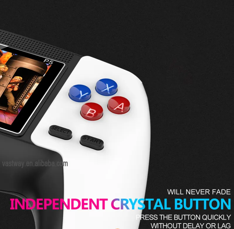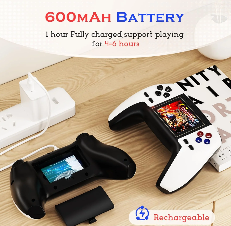 Echipată cu o baterie litiu reîncărcabilă, consola oferă între 4 și 6 ore de joc neîntrerupt, iar portul universal micro USB face încărcarea rapidă și ușoară, eliminând nevoia de a schimba baterii. Concepută pentru a îmbina nostalgie cu tehnologie modernă, consola P5 este perfectă pentru copiii pasionați de jocuri retro, dar și pentru părinții care doresc să împărtășească amintiri din copilărie.