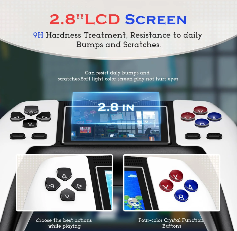 Transformă momentele de relaxare în adevărate aventuri retro cu consola de jocuri portabilă P5, echipată cu 520 de jocuri retro preîncărcate, gata să ofere ore de distracție neîntreruptă pentru copii și adolescenți. Această consolă a fost creată cu un design prietenos și ergonomic, adaptat nevoilor celor mici, având butoane și un ecran optimizat pentru utilizare facilă. Fie că te afli acasă, în mașină sau într-o excursie, consola P5 îți aduce bucuria jocurilor oriunde te afli, fără a fi nevoie de cartușe suplimentare sau descărcări digitale.