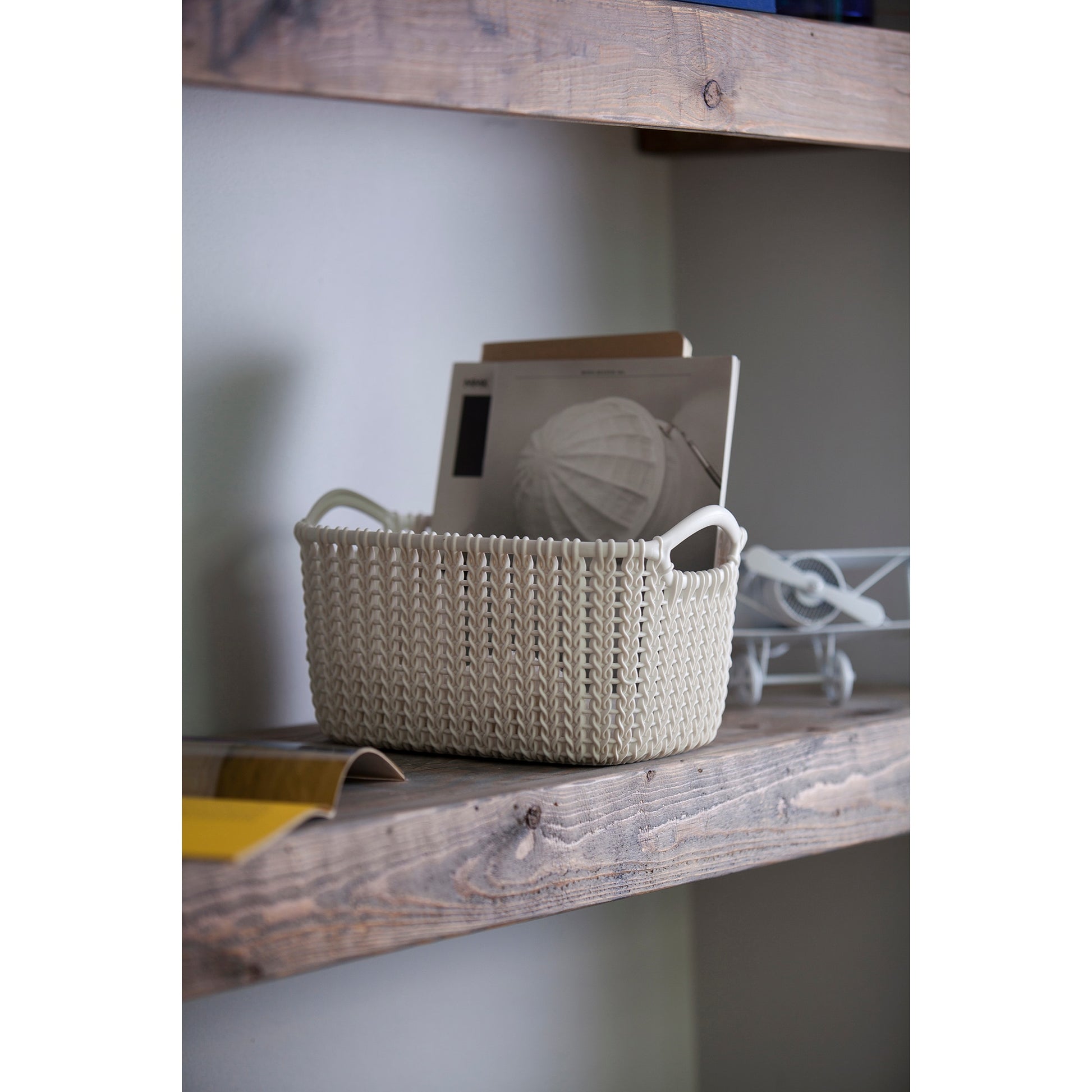 Coșul dreptunghiular Curver Knit, cu o capacitate de 3 litri, este soluția ideală pentru depozitarea obiectelor mici, fie că este vorba de jucării, articole de baie sau alte accesorii esențiale din casă.