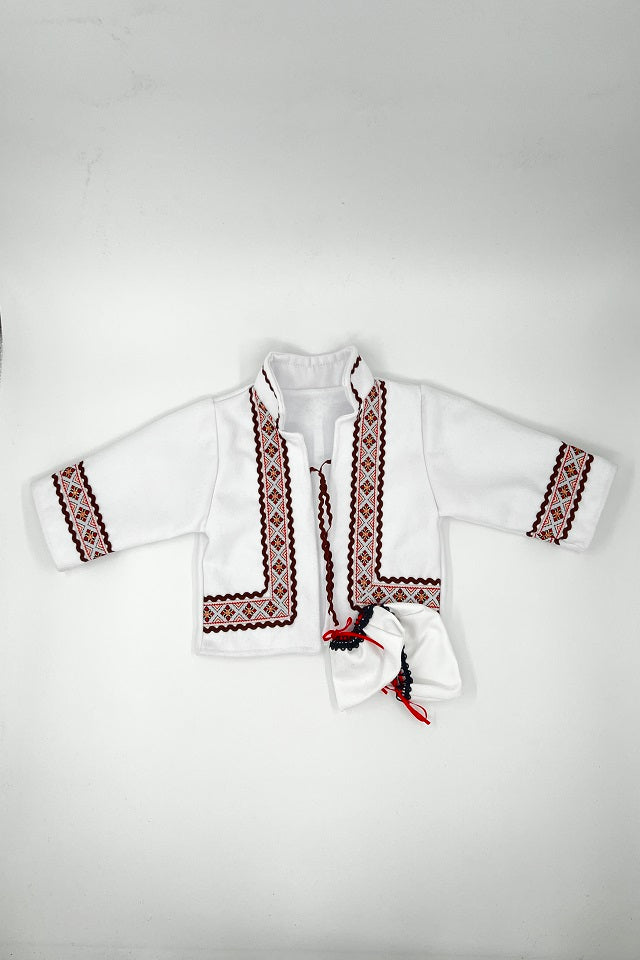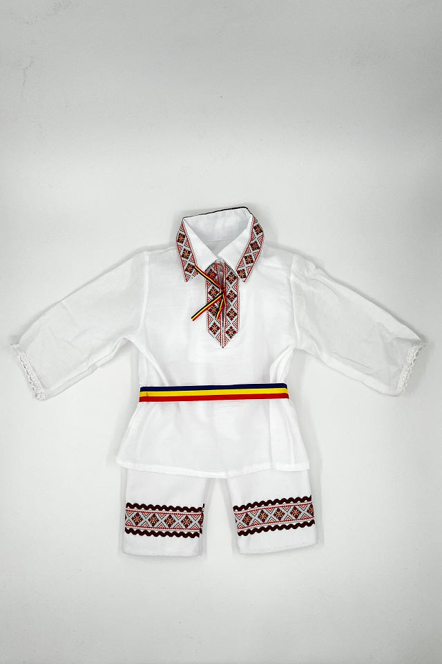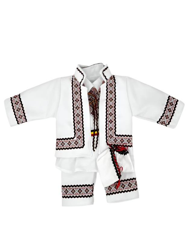 Costum Popular pentru Bebelusi - Set Complet Alb cu Motive Nationale