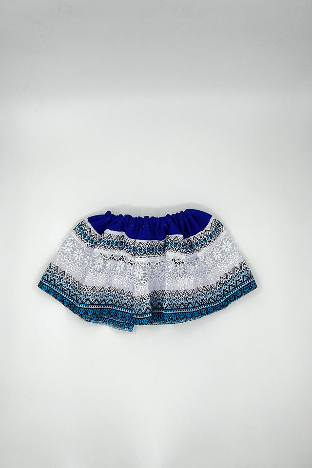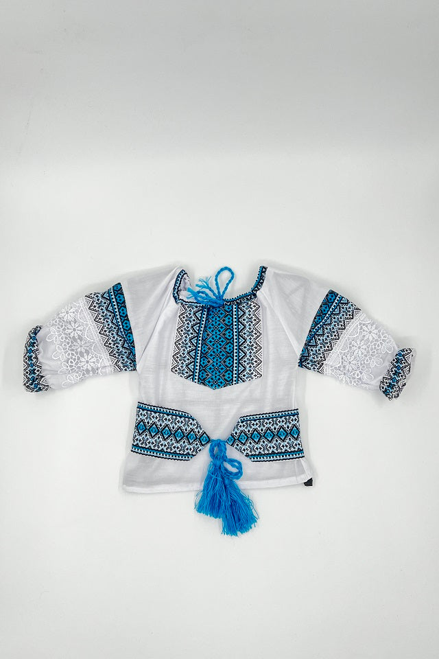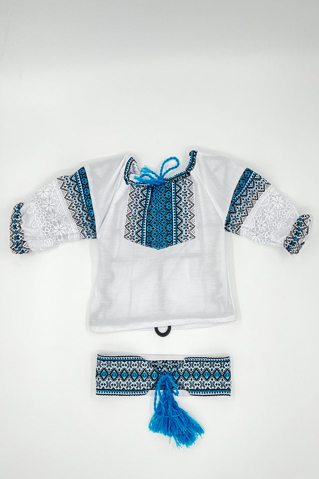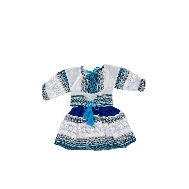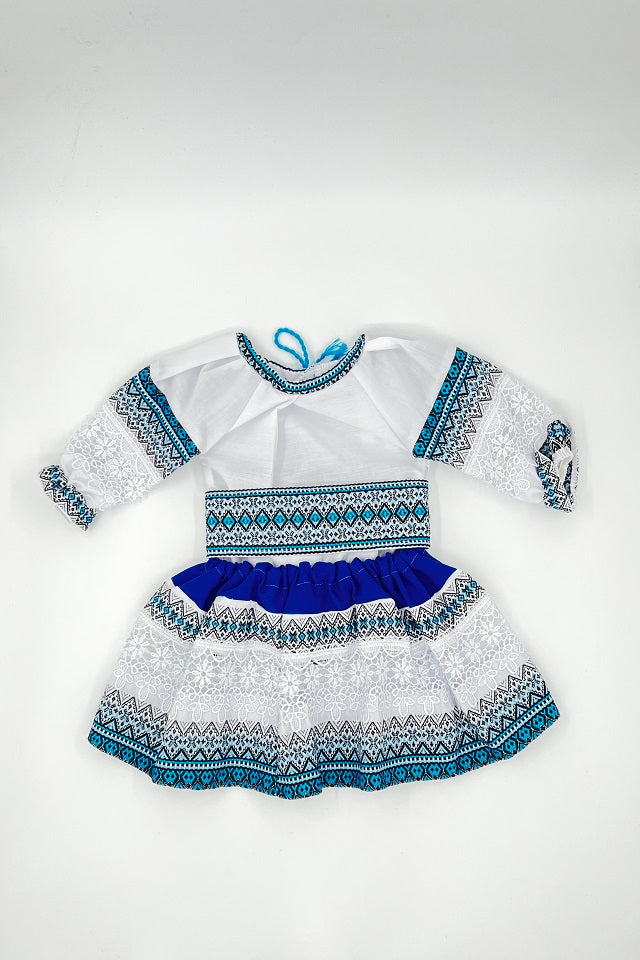 Costum traditional Fetita, 3 Piese, Alb/Albastru, 6-9 Luni