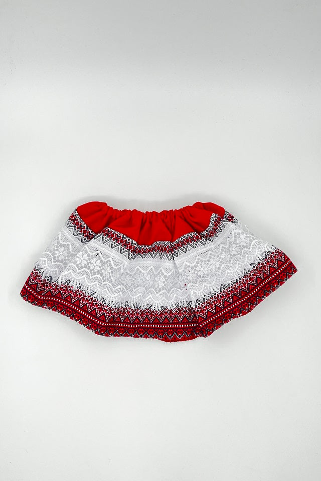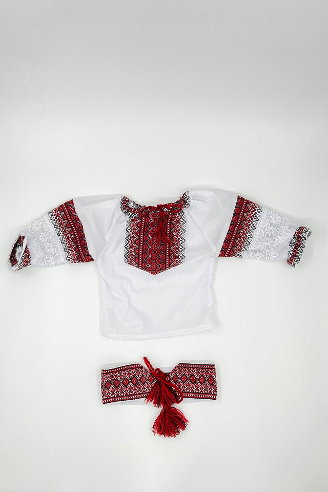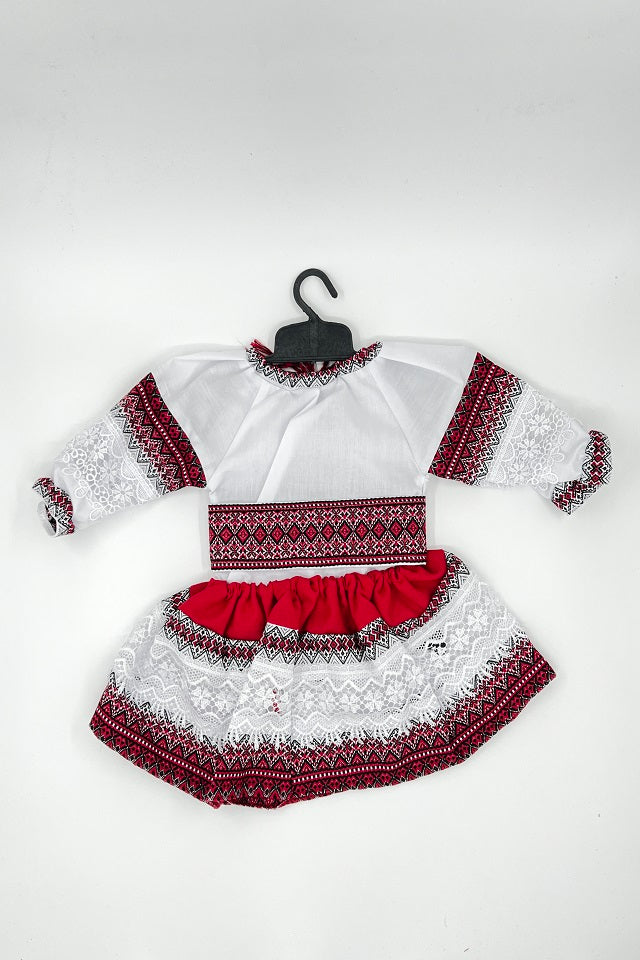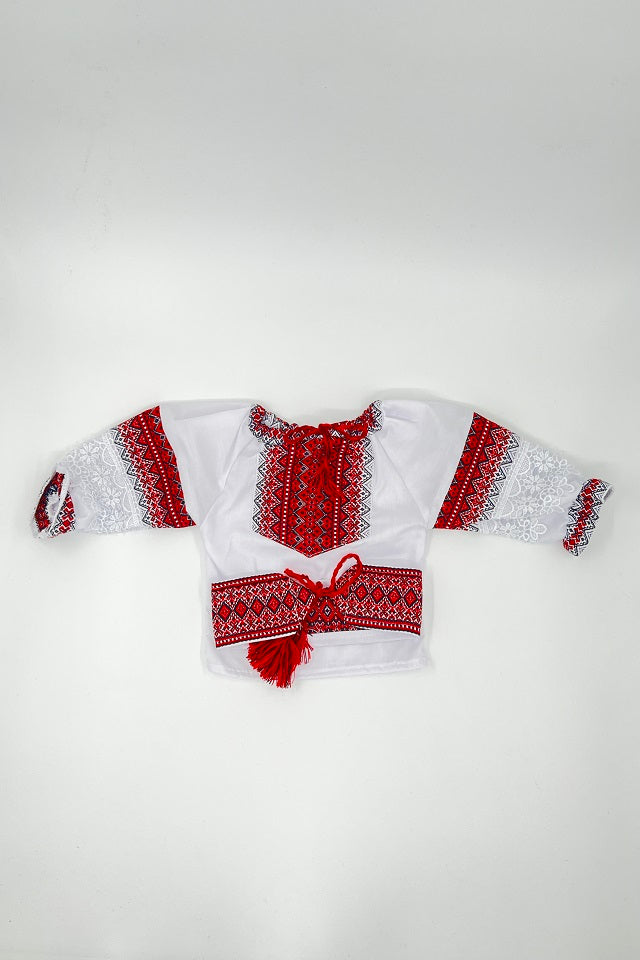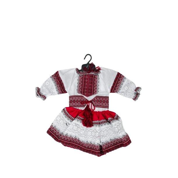 Costum traditional Fetita, 3 Piese, Alb/Rosu, 6-9 Luni