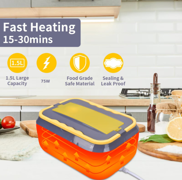 Cu o putere de 40W, această cutie de prânz electrică vă permite să eliminați timpul lung de așteptare. Conectați-o și savurați o masă sănătoasă și fierbinte în cel mai scurt timp. Capacitatea de 1.5 litri este ideală pentru persoanele cu poftă de mâncare, oferind suficient spațiu pentru porții generoase.