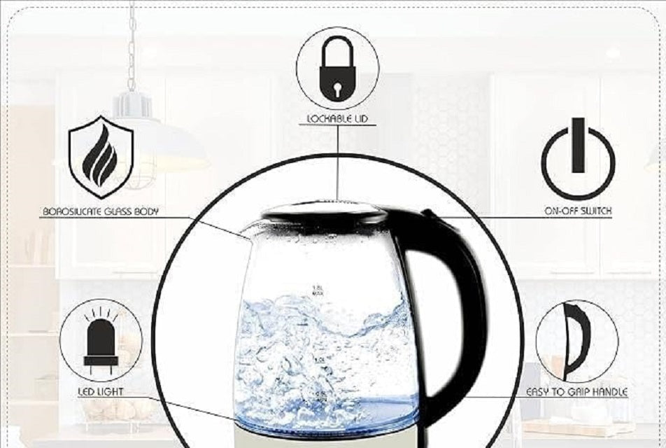Design Elegant și Durabil: Fabricat din sticlă de rezistență industrială și cu accente din oțel inoxidabil, acest fierbător are un aspect modern și elegant, fiind totodată rezistent la uzură și durabil.