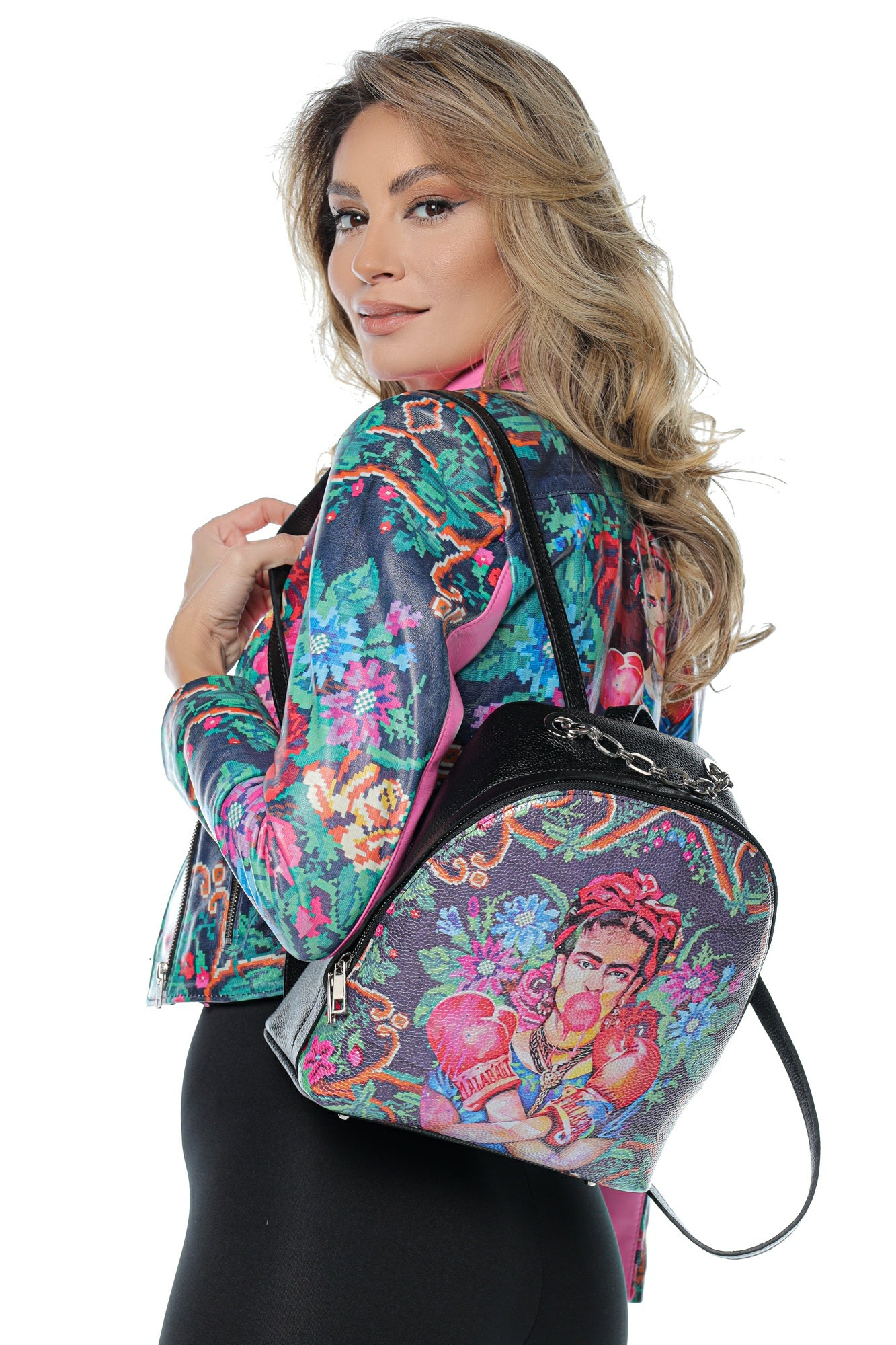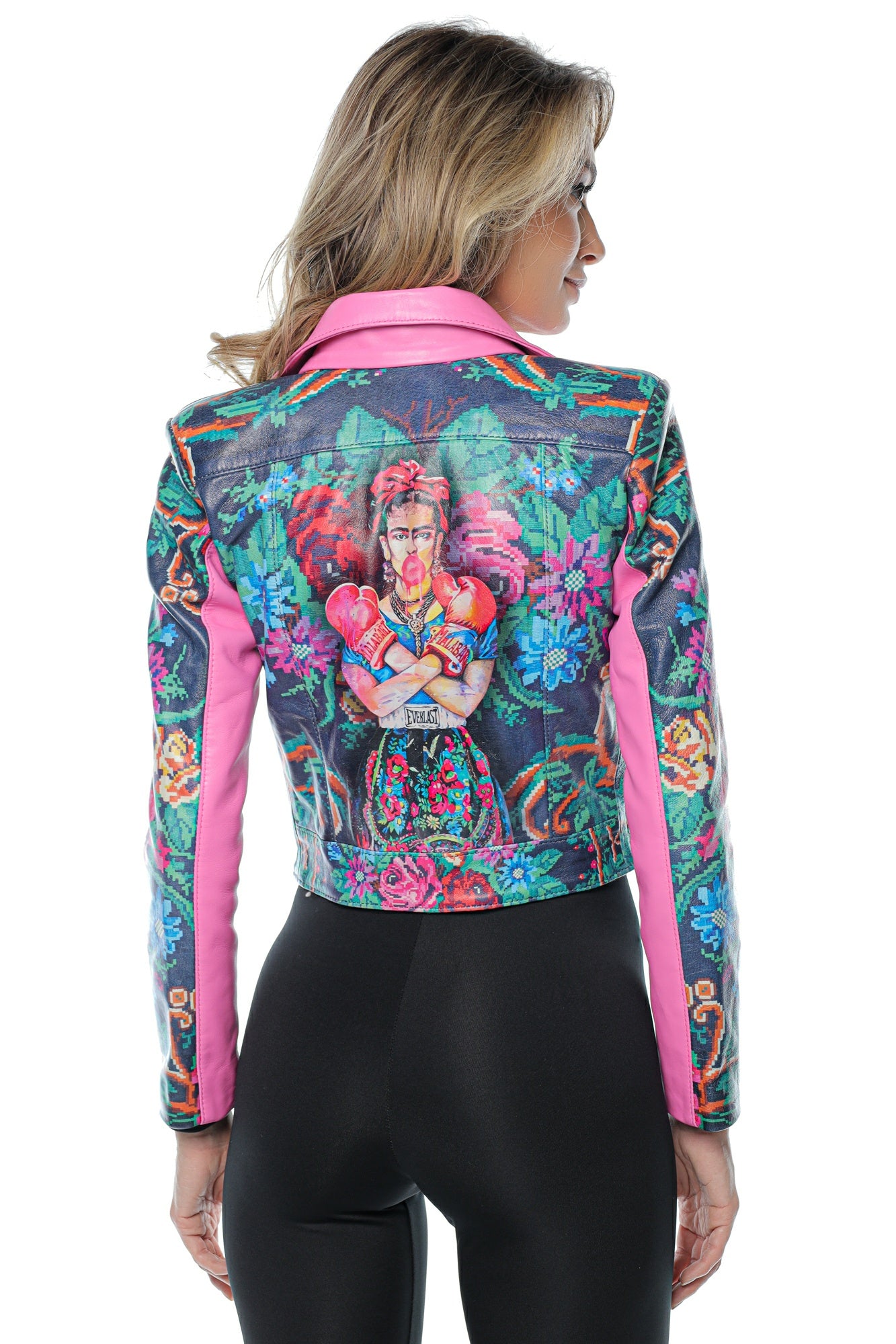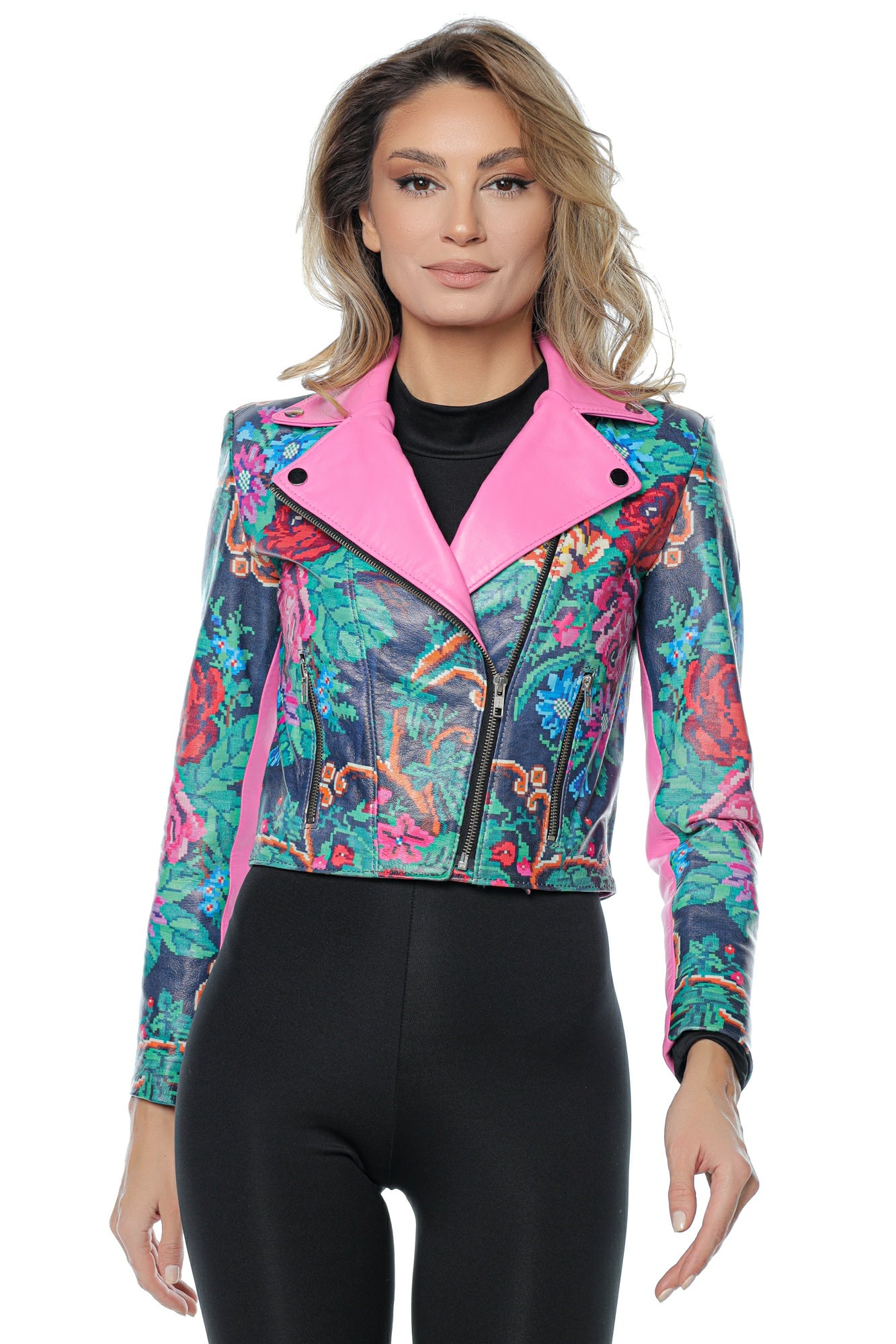 Geaca YA Frida by YOKO AIDA - Piele Naturală, Print Floral Tradițional, Roz, S