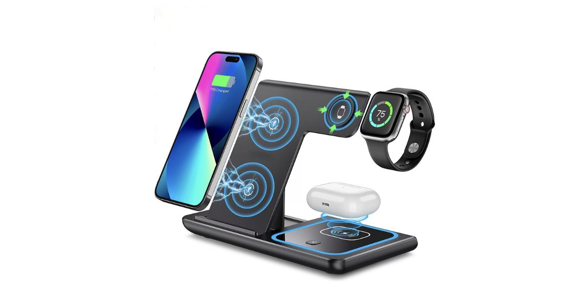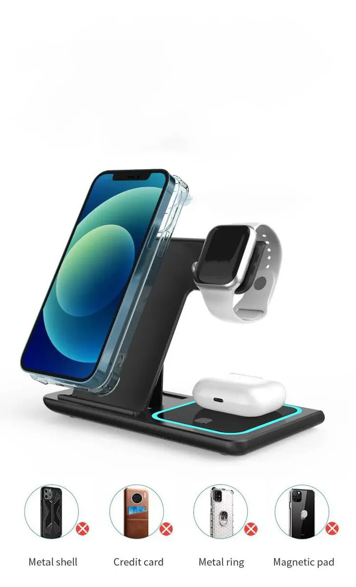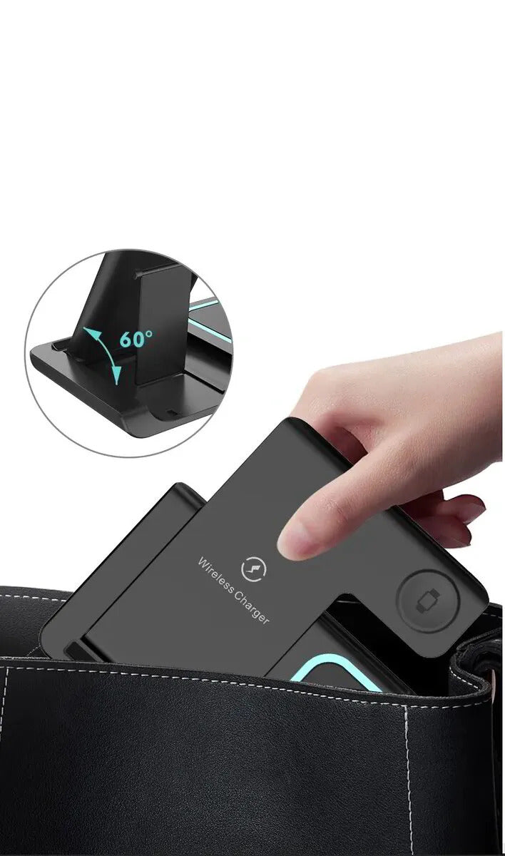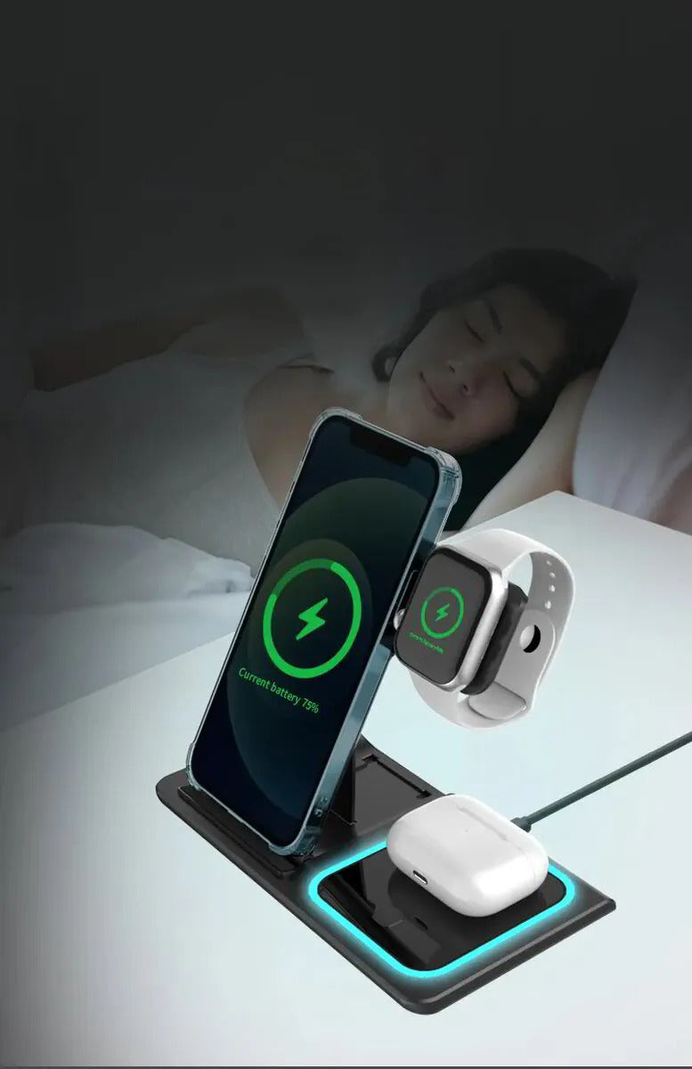 Dock-ul de Încărcare Wireless 3 în 1 este partenerul ideal pentru a vă menține dispozitivele esențiale încărcate și gata de utilizare.