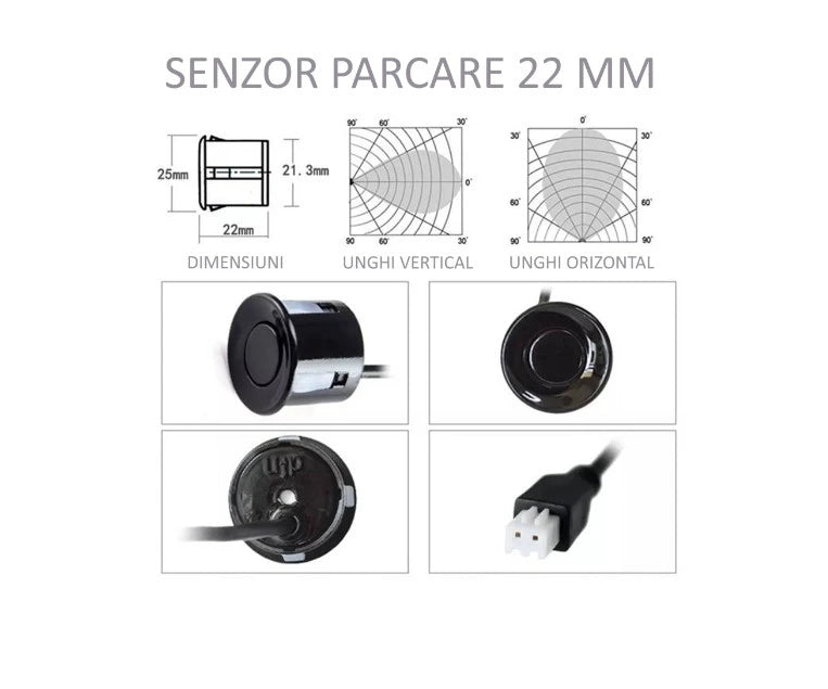 Kit 4 Senzori de Parcare 12V, 22 mm – Parking Assistant cu Afișaj LED și Avertizare Acustică