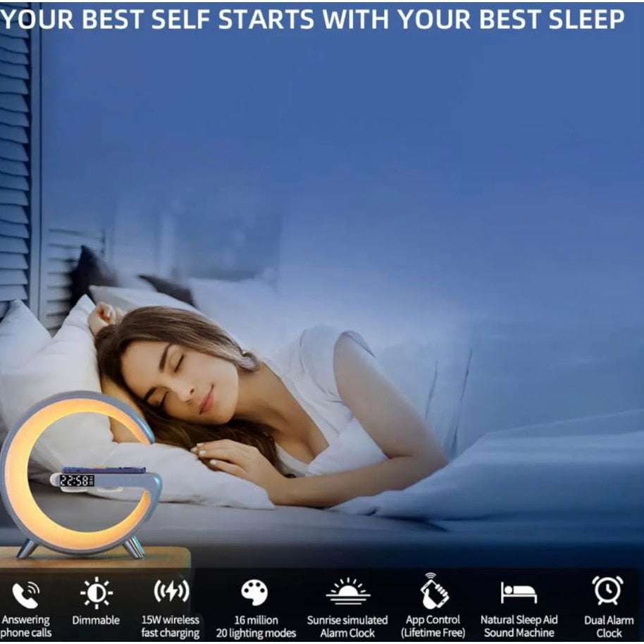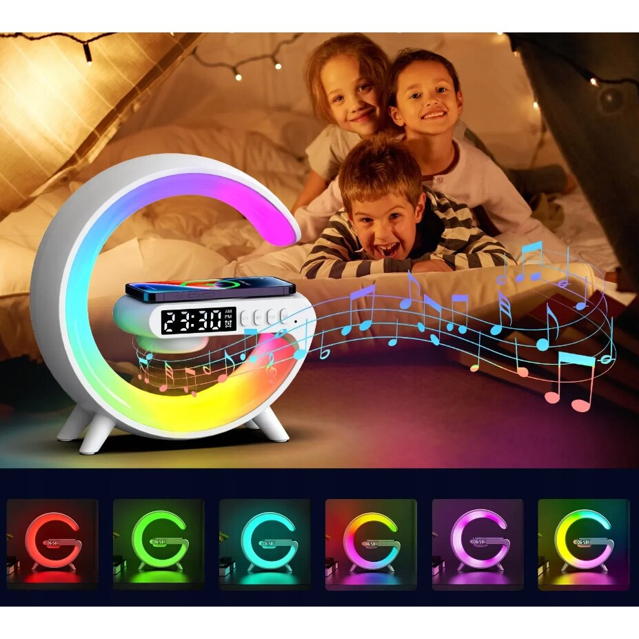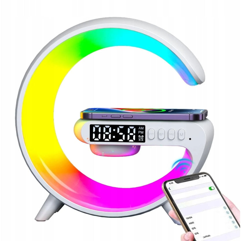 - Multifuncționalitate: Iluminare, încărcare, ceas și divertisment audio într-un singur produs.