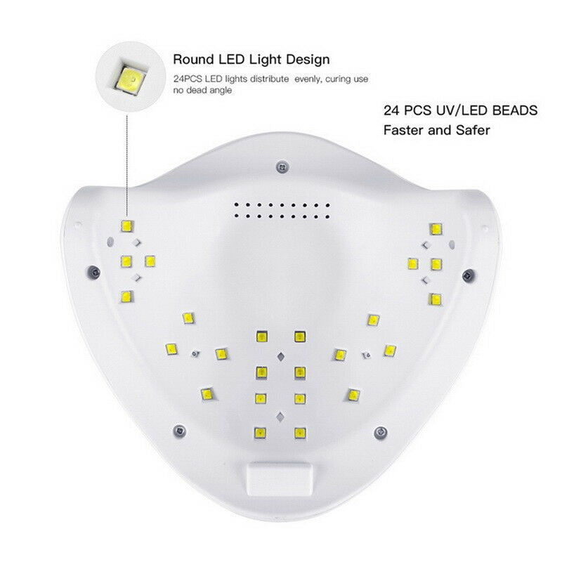 Lampa UV/LED SUN, 48 W, Display, Timmer, 24 LED, Activare prin senzori, Alb