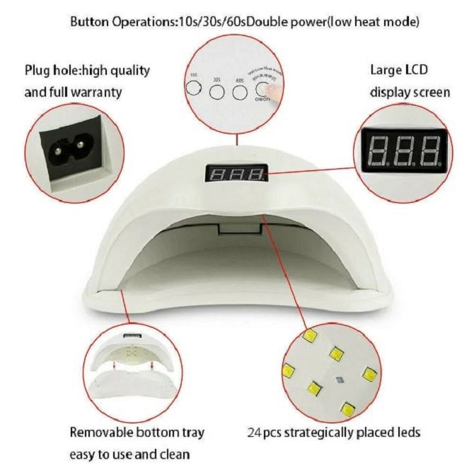 Transformați-vă rutina de îngrijire a unghiilor cu Lampa UV/LED SUN Original, un instrument esențial pentru uscarea manichiurilor cu gel sau oja semipermanentă. Designul său practic și eficient o face ideală atât pentru uz casnic, cât și profesional în saloanele de înfrumusețare.