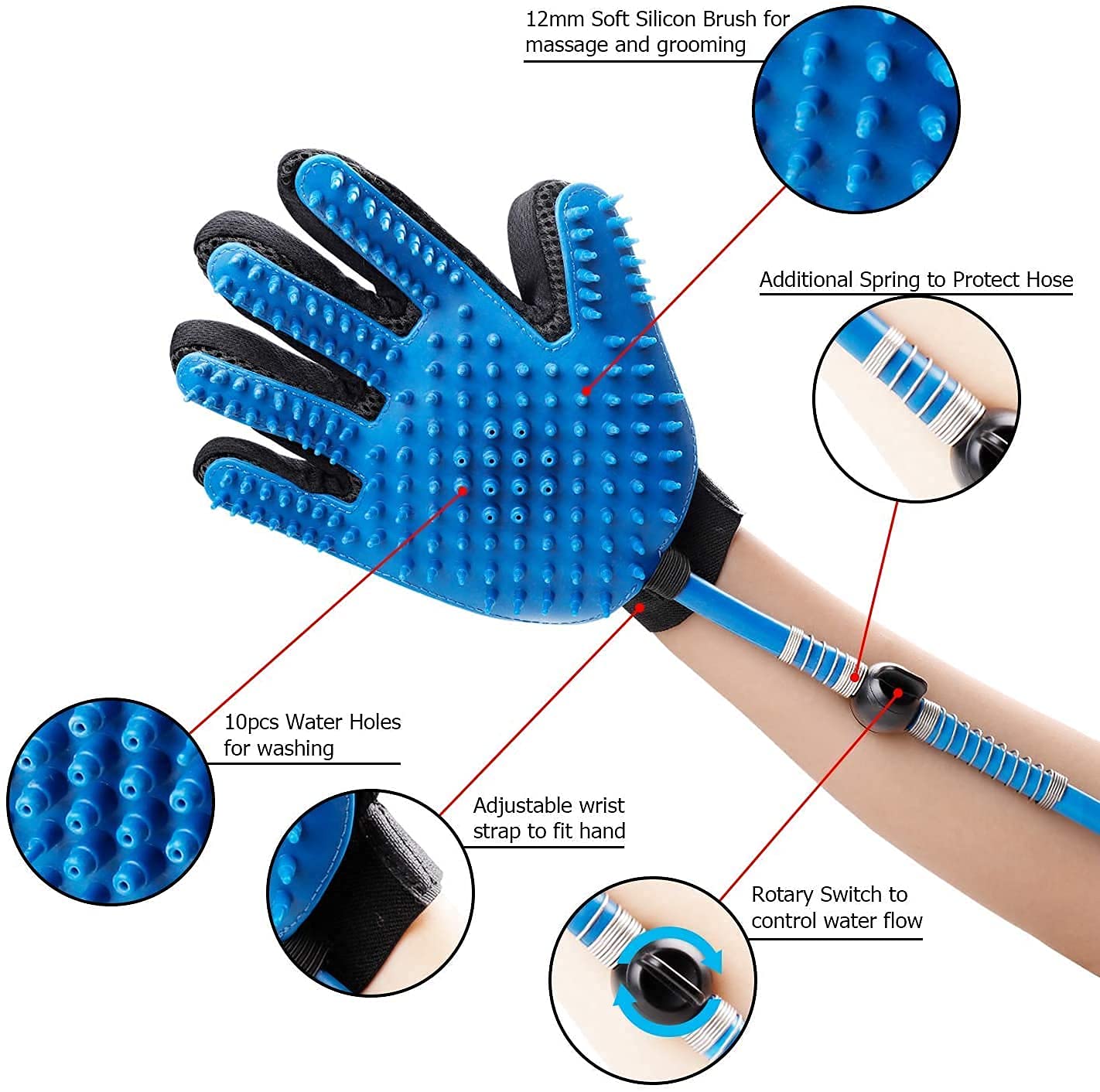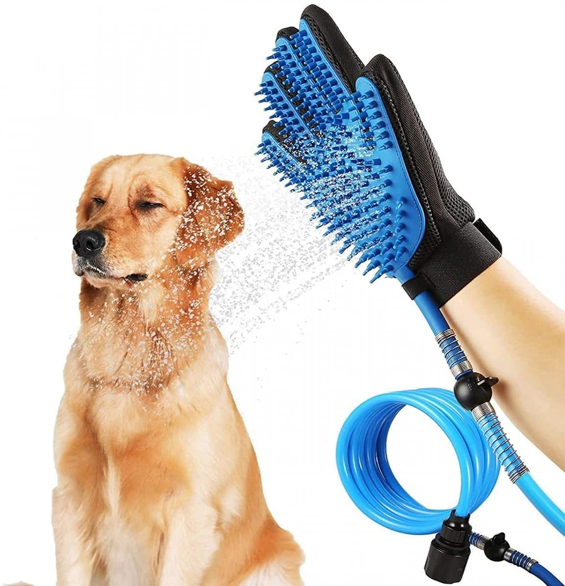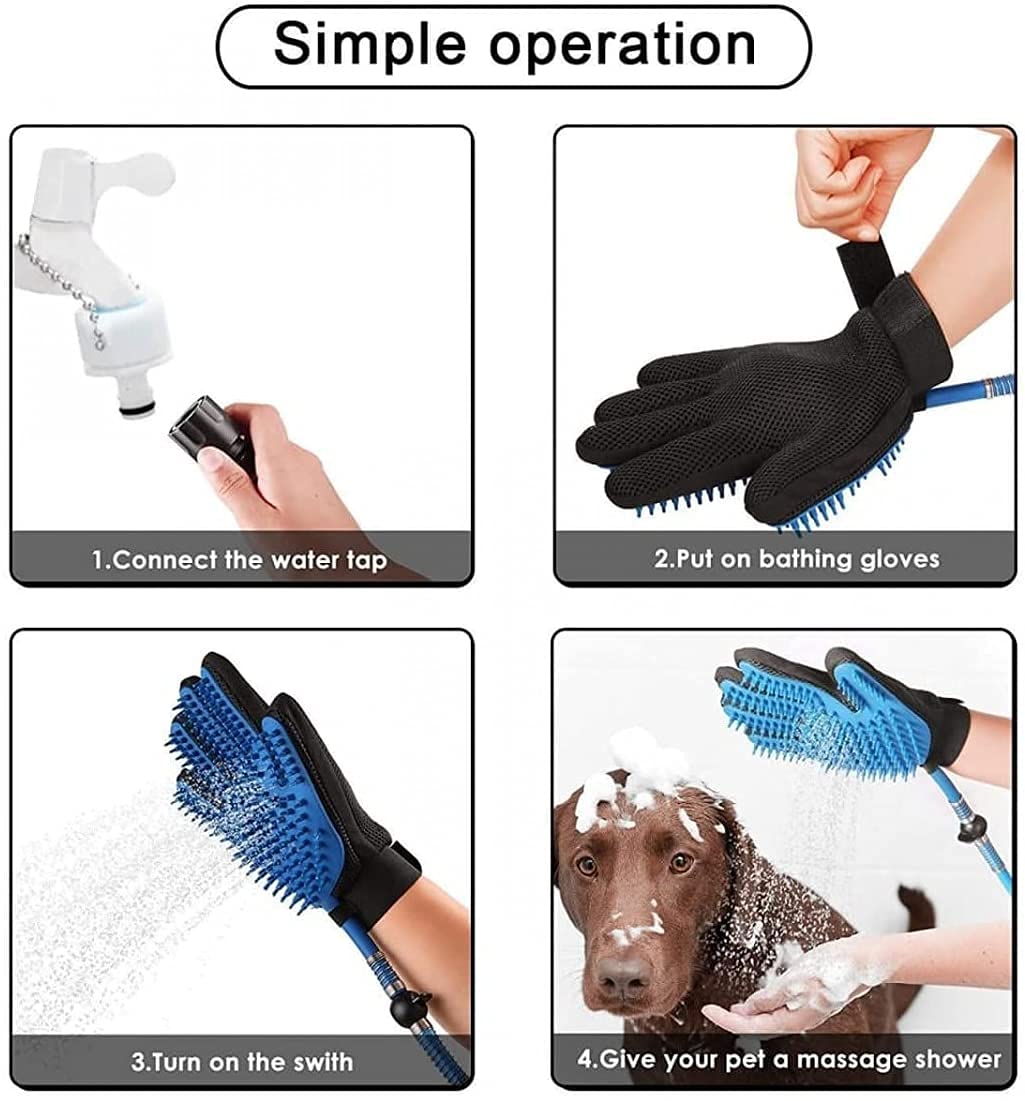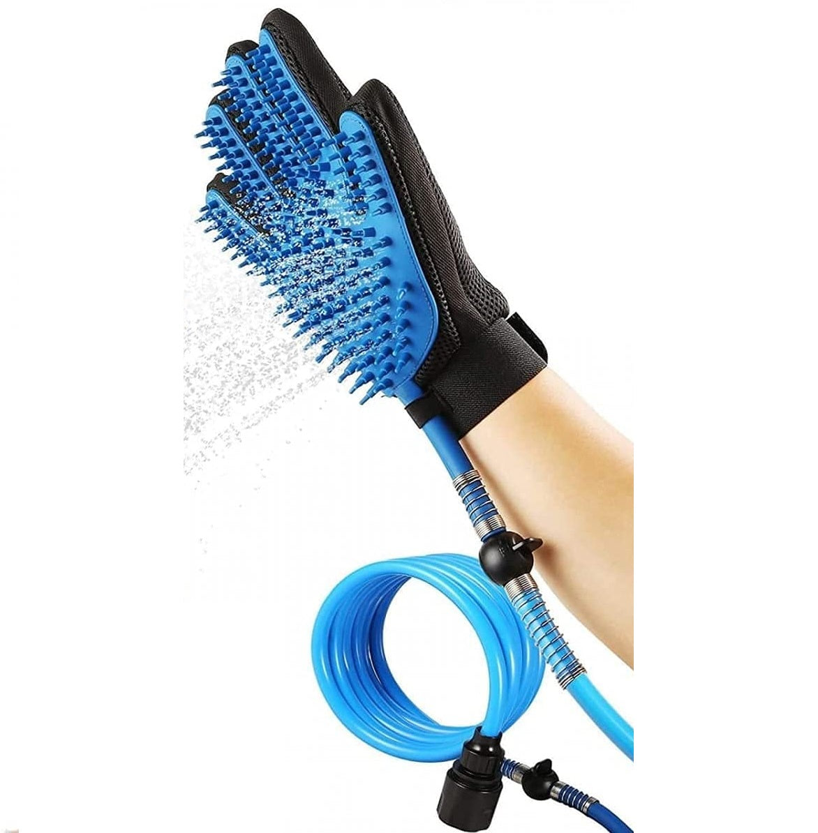 Mănușile dispun de un pulverizator de duș integrat, facilitând spălarea și clătirea rapidă a blănii, fără a necesita alte ustensile sau recipiente pentru apă. -