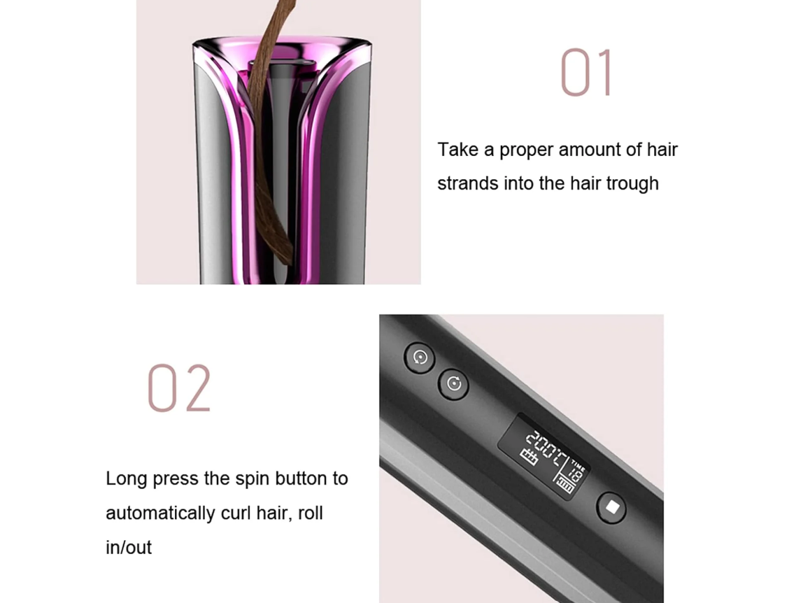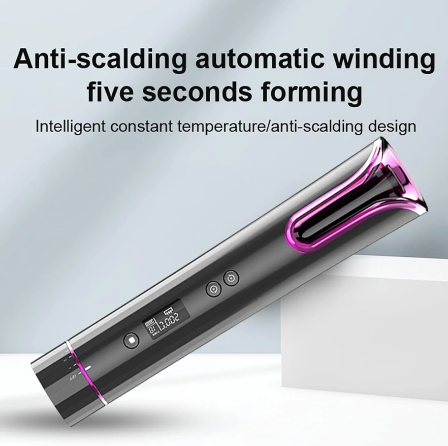 Ondulator Automat Spiko SJ-868, LCD, Portabil, Reîncărcabil USB, Bucle Perfecte, Anti-Frizz
