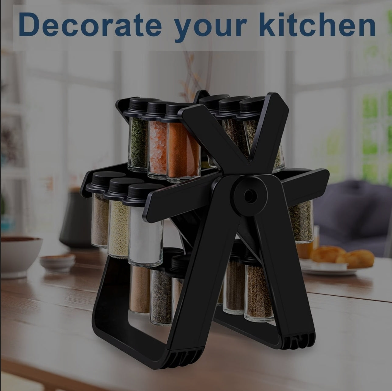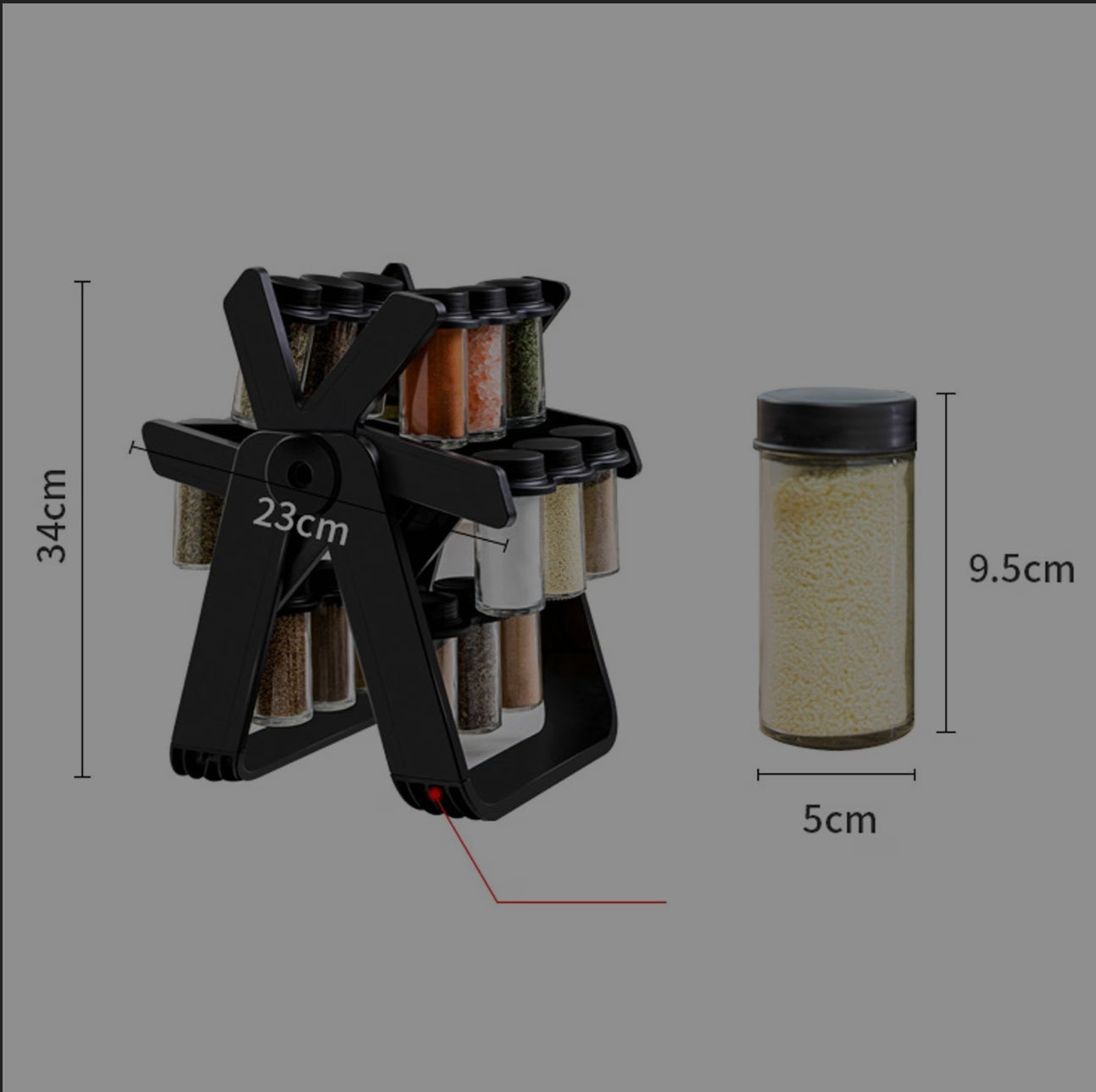 Organizator de condimente, 18 Borcane din sticla, Rotativ, Negru