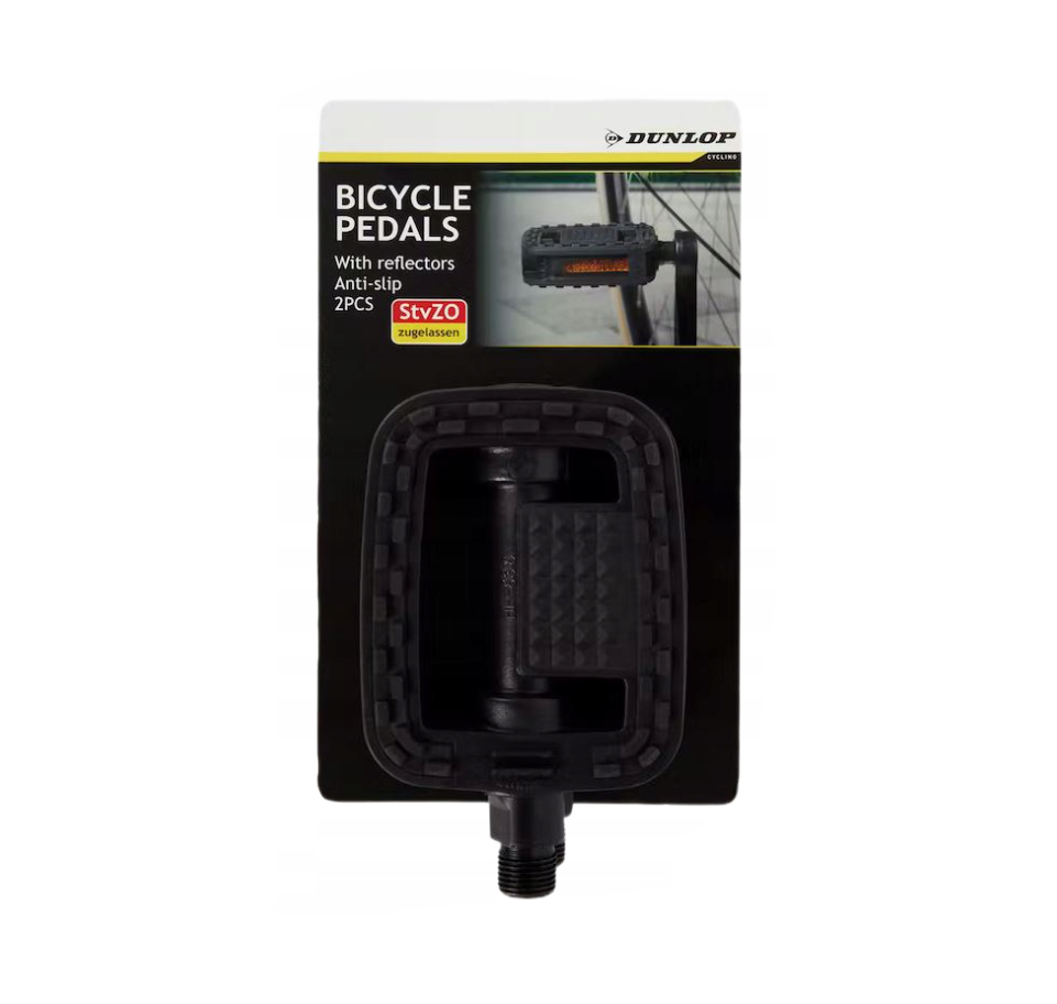 Pedale Bicicletă Dunlop, 2 Bucăți, Negru - Antiderapante și Reflectorizante