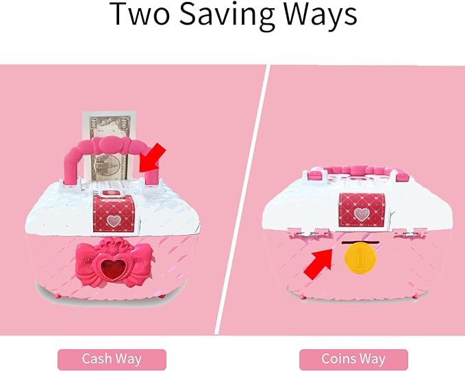 Pusculita pentru fetite, tip seif cu cod, rulare automata a banilor, Roz