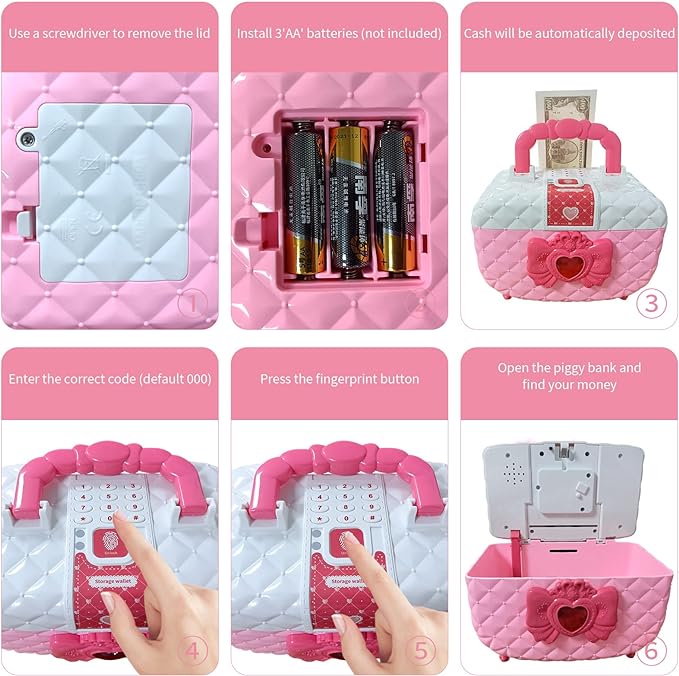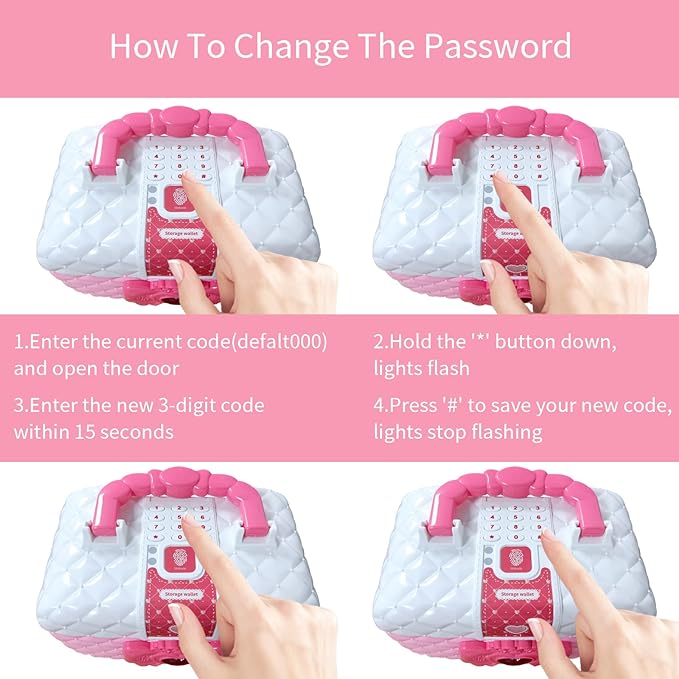 Pusculița este securizată cu o parolă presetată '000', care poate fi schimbată ușor la o nouă combinație de 3 cifre. Dacă parola este uitată, aceasta poate fi resetată rapid prin reinstalarea bateriilor. -
