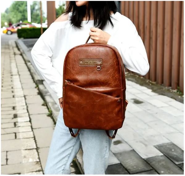 Rucsac Retro de Damă din Piele Ecologică Maro