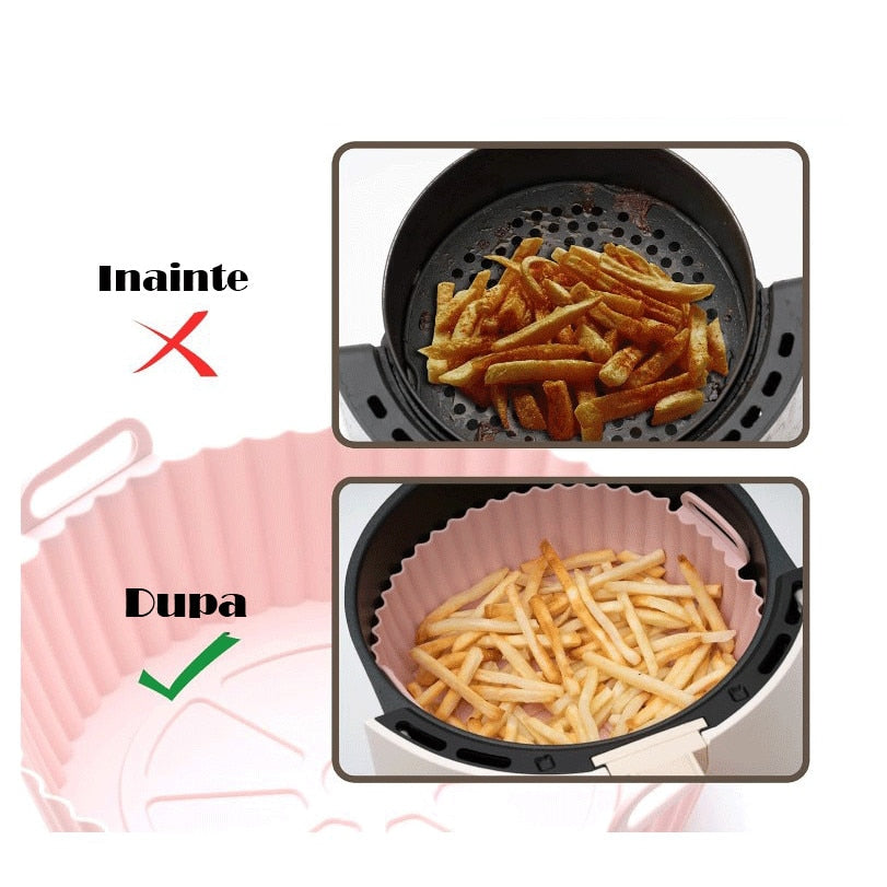 Tavă de Protecție Universală din Silicon pentru Air Fryer - Reutilizabilă și Ideală pentru Prăjit și Copt